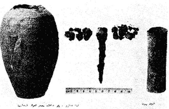 Das Gefäß verleitet zu Spekulationen, da es mit gleichartigen zusammengeschaltet theoretisch als Batterie gedient haben könnte. Datiert wurde dieses Tongefäß auf 250 v. Chr. – 225 n. Chr.