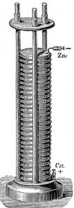 Ein Problem der frühen Galvanotechnik war die Stromversorgung. Haushalte und selbst Firmen waren nicht an ein Stromnetz angeschlossen. Man behalf sich mit großen Batterien, etwa der Voltaschen Säule. Diese bestand aus vielen Lagen, bestehend aus Zink und Kupfer oder Zink und Silber. Als Elektrolyt diente Pappe oder Stoff, der in Lauge getränkt wurde. Werden die Metallplatten miteinander verbunden, entsteht ein konstanter Stromfluss, bis die Batterie erschöpft ist. Diese Stromquelle war nicht nur sehr teuer, sie lieferte auch, im Vergleich zu heute, nur niedrige elektrische Ströme.
